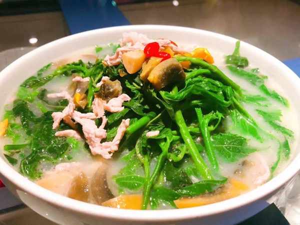 美食推薦:上湯桑葉,進店就被這道菜的食材驚艷,什麼?桑葉也能吃?是的,不僅能吃,還能搭配皮蛋和肉絲一起做成湯,味道就是春天大自然的味道,湯頭有點點草和肉的香味。
