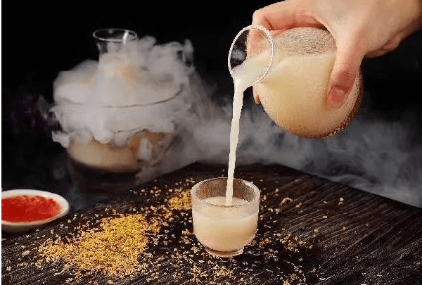 除瞭前面提到的兩款菜品,火宮殿市府店在飲品創新上也有自己獨到的見解。比如,為滿足年輕人獵奇的需求,研發出一款網紅飲品桂花釀米酒,酒精濃度不高,甜味不重,吃到嘴裡是糯糯的口感,幹冰呈現煙霧繚繞的氛圍,有客人品嘗後連點十紮。飲品做得好,不但能提升餐廳的美譽度,還能有效提高餐廳利潤。
