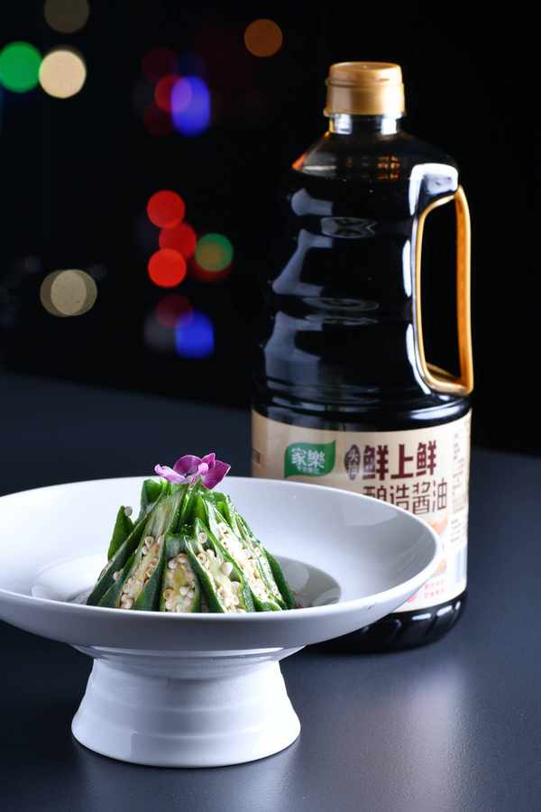 除瞭創新熱菜,市府店的創意涼菜也廣受好評。撈汁芥末秋葵,選用優質嫩秋葵,焯水後呈現碧綠鮮色,冰鎮保持脆爽口感,改刀後,淋入用傢樂頭抽鮮上鮮、辣鮮露、芥辣調制成的汁,出品速度快,味道濃鬱爽口,一天可以賣出好幾十份。