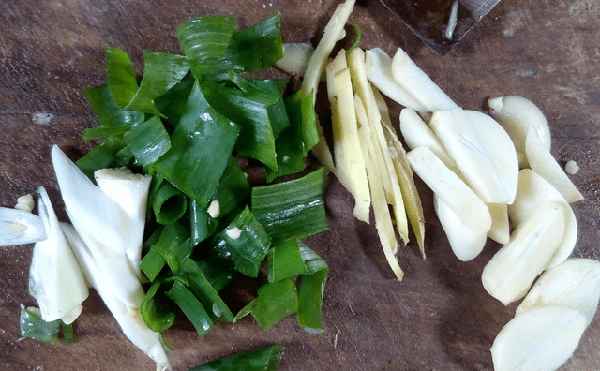 4.鍋中加適量油,油溫熱後放入蔥薑蒜爆香。