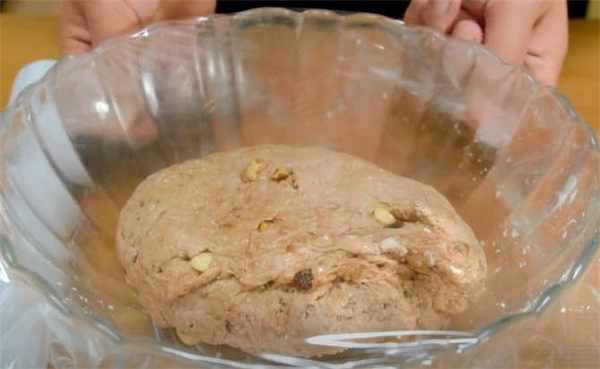 3.現在咱們再來和巧克力的面團,把融化好的巧克力放進去,攪一攪,接下來用溫水和面就可以瞭,揉成這個程度的面團就可以瞭,同樣的也蓋上保鮮膜讓它去發酵,溫度適宜情況下,30-40分鐘就發酵完成瞭。