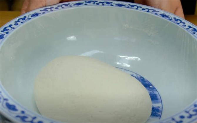 2.現在我們來和面,這是300g的面粉,放3g的酵母粉,用160毫升的溫水和面,攪拌成面絮,下手揉成團,揉成一個光滑中等軟硬的面團就可以瞭,封上一層保鮮膜。