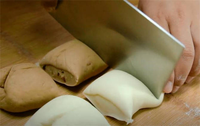 4.這兩個面團現在已經發好瞭,多揉一會兒,把裡面的空氣都排出去,把這個也揉勻,然後切成小面劑。