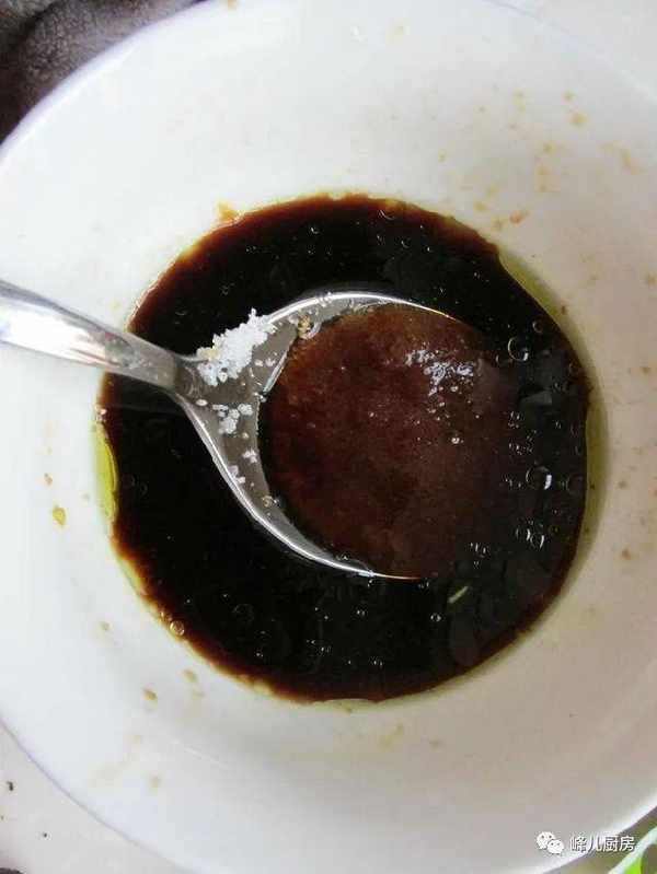 2、把醋、生抽、白糖、鹽放到碗裡,攪拌均勻。