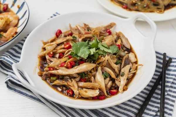 我要給它拌一個最最最好吃椒麻雞腿肉,雞腿整個下鍋裡煮熟,過冷水放涼後,把雞腿肉撕下來,撕成條條,淋上咱們秘制的麻辣涼拌汁,我自認為,這就是一份超超超好吃的椒麻雞啊!這份涼拌汁用來拌牛肉,拌雞肉,拌豆芽都超級贊的。