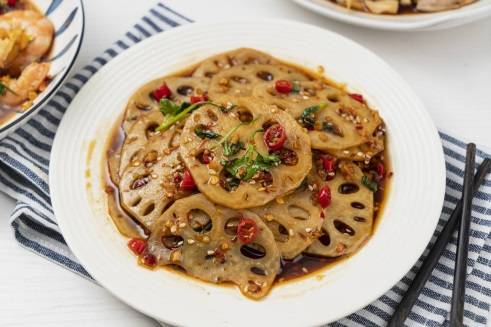 我拌的是香辣藕片,藕片切片下鍋煮熟,過涼水,把調好的涼拌汁倒下去拌勻。香辣爽口的藕片,我就是不吃飯,當刷劇零食都能幹掉一盤呀!真的絕瞭。 拌藕片,土豆片都是好吃到飛起,如果你想吃肉,也完全沒有問題!