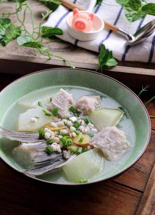 說來說去,講的其實就是芋頭,芋頭如果品質好的,蒸熟後很香的,所以又稱作香芋,口感很軟糯,做甜品很滑膩誘人;芋頭常食可解毒抗病,補中益氣,它富含蛋白質、鈣、磷、鐵、維生素等多種營養成分,用來配搭消暑利尿的冬瓜和薏米,再加一條營養豐富的鯇魚尾,這樣的湯非常香非常鮮,最搶鏡的就是香芋瞭,芋煮的時間不能太長,不然會直接給煮沒瞭,這湯連帶冬瓜、薏米也很鮮味好吃!