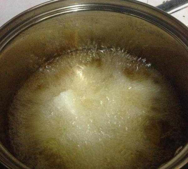 到入油鍋裡炸,鍋中倒入適量油,燒至7成熱後下入糯米條。