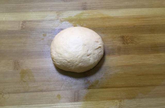 3、蓋上保鮮膜將和好的面餳發至兩倍大,夏季半個小時多就可以瞭。面餳的特別好,面板上用刷子刷點油,揉面,要揉一至兩分鐘,這樣揉面一能排除空氣,二揉面能使面上勁,三這樣揉出的面既光滑又柔軟。