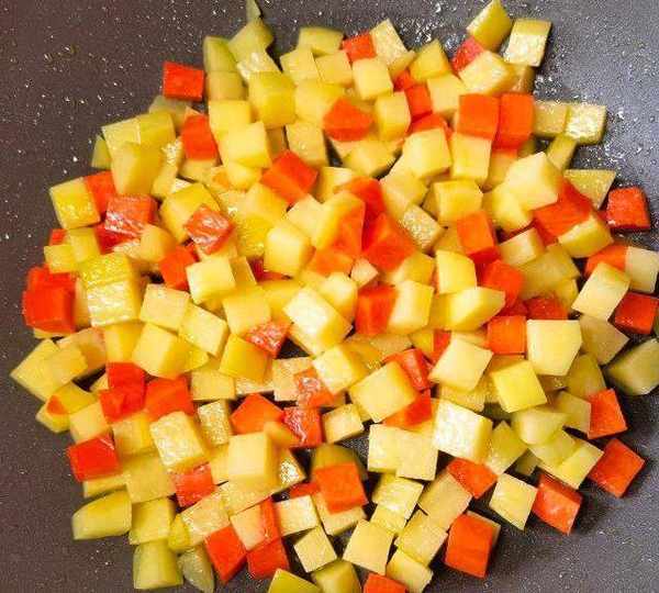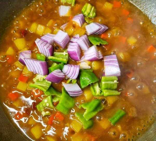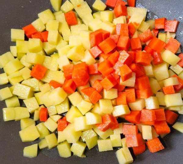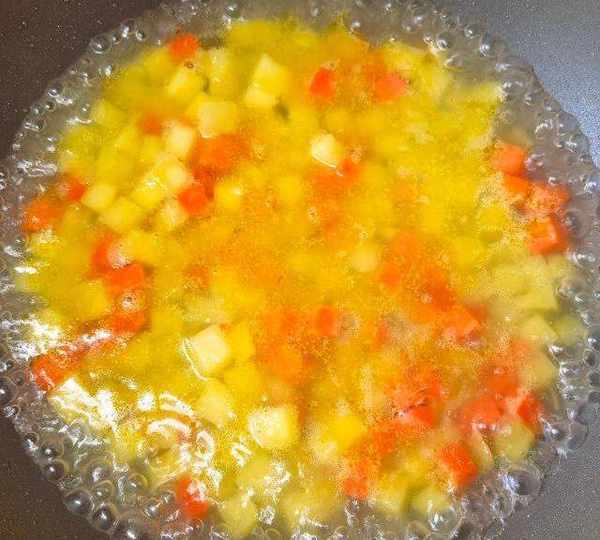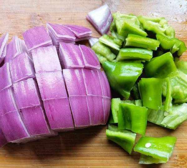原料:土豆、胡蘿卜、青椒、洋蔥、山茶油、好侍咖喱王。