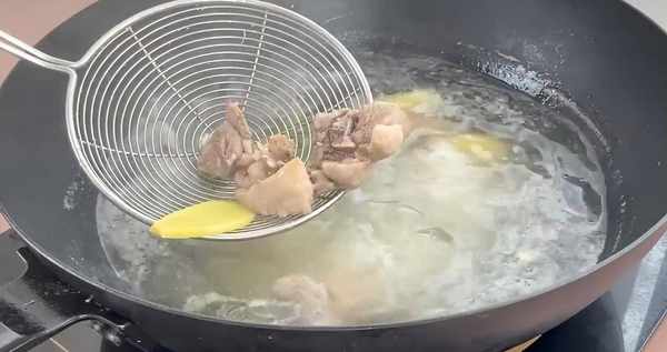 1、 選擇嫩羊肉、切成塊,清洗幹凈後冷水下鍋,加入料酒,煮沸後撇去浮末,撈出過冷水清洗幹凈,瀝幹水分備用。