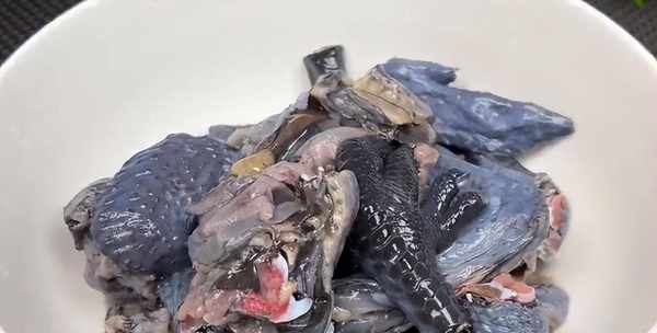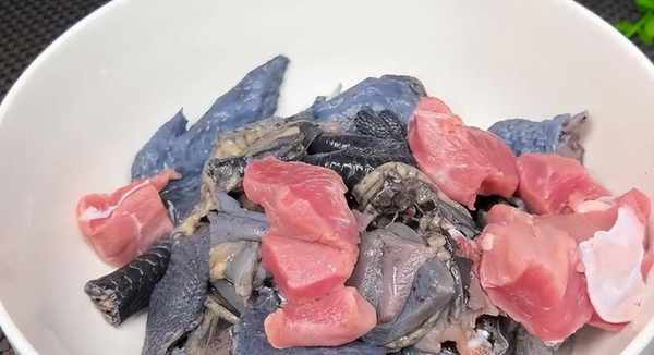 1、 將烏雞砍成小塊,用清水洗凈,冷水下鍋,加料酒、生薑、小蔥片煮沸,撈出過冷水清洗幹凈,瀝幹水分備用。