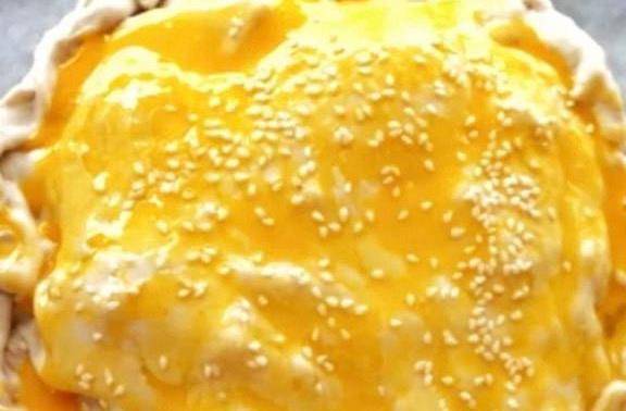 第六步:碗中打入一個雞蛋黃攪散,雞蛋黃攪散後用刷子刷在手抓餅的其中一面上,再撒上白芝麻,餅胚就做好啦第七步:烤箱180度提前預熱3分鐘,然後將餅放入烤箱180度烤20分鐘,20分鐘後即可食用,芝士紅薯餅就完成啦