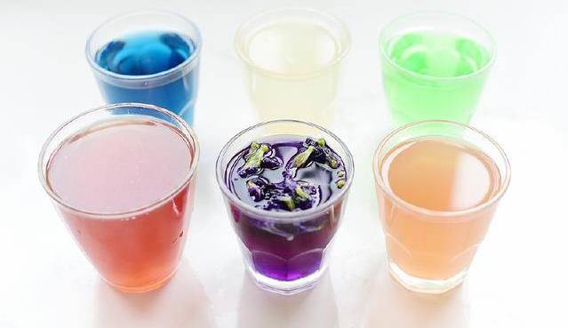 4:紫色:泡好後的藍蝴蝶花裡面加入少許的檸檬汁,即可變紫。