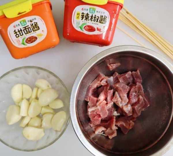 原料:牛肉、大蒜、韓式辣椒醬、甜面醬、黑胡椒粉、紅薯淀粉。