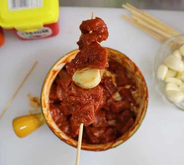 第9步、韓式風味的辣醬烤牛肉串制作完成。