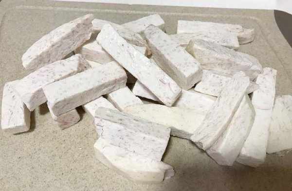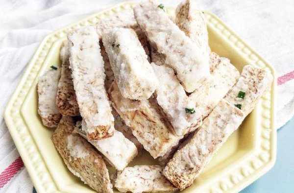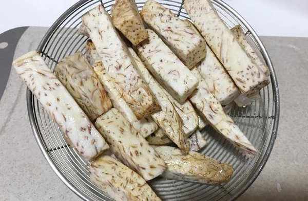 【做法】1、芋頭去皮洗凈,切成2厘米寬的長條。