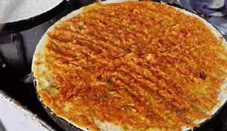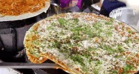 小夥子做的小吃之所以稀罕,是因為有著煎餅的外皮,披薩的餡料……看著和煎餅果子很是相似,但是也有一些不太一樣的,雖然大傢叫不上名字來,但是一點也影響不到品嘗美食的心情。