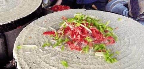 做好後用一個小鏟子,鏟成一小塊一小塊的,疊起來,這樣吃這也方便。小夥子說他傢的小吃這麼受歡迎,一是做法獨特,再者就是醬汁美味。做醬汁的時候,用紅腐乳,加入1大匙涼白開水,拌勻並用匙子把腐乳壓碎,再加入蒜蓉豆豉醬和甜面醬拌勻即可,喜辣味的同志可以再加入些辣椒醬。