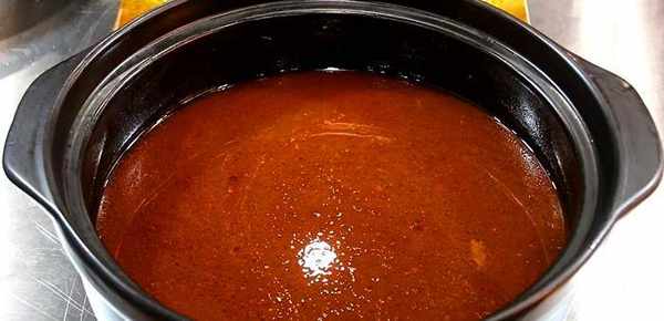 配料:高湯5000克、糖色70克、大紅椒10克、冰糖60克、料酒50克、鹽100克。