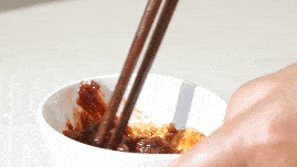 2.準備甜辣味醬料:1勺韓式辣醬+1勺松茸一品鮮+1勺孜然粉+1勺辣椒粉,攪拌均勻