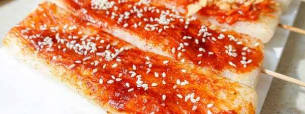 5.最後給年糕串上分別刷上醬料,兩面都要刷哦