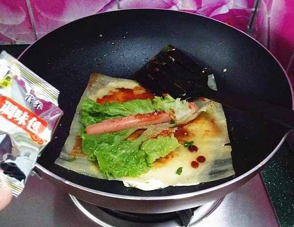 第一次聽到烤冷面時,真沒明白哪是啥玩藝;笨的我隻是按字面理解:如何烤冷面條呢?後來看圖解才知曉:原來烤冷面:貌似是一張加瞭雞蛋、洋蔥和火腿腸等食材的煎餅,可為什麼那麼受歡迎呢?於是咱也花瞭9.9元,買瞭袋買回來解饞。