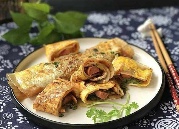煎餅果子、手抓餅、烤冷面和蛋堡:並稱為小吃界的四大天王。烤冷面:起初並不叫烤冷面、而叫鋼絲面,是一種以幹冷面皮、雞蛋、香腸等為主料做的面食,也是常見的東北特色小吃。