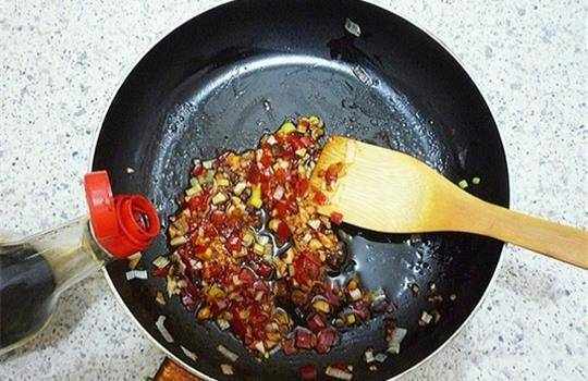 等到我們把鍋中的豆瓣醬和剁椒都炒出紅油之後,下入兩勺白糖,翻炒均勻白糖,能夠起到很好的提鮮效果,加入到香辣風味的菜肴當中,可以讓我們的菜肴變成更加美味的甜辣風味。