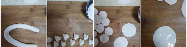 3.切成大小均勻的小劑子。將小劑子按扁,搟成圓片。做好所有的。