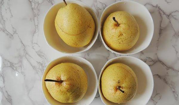 2.將雪梨泡在淡鹽水中10分鐘左右,然後用蘇打粉搓表皮,用水洗凈,雪梨不必削皮,煮好後和皮一起吃,所以一定要把表皮洗幹凈。