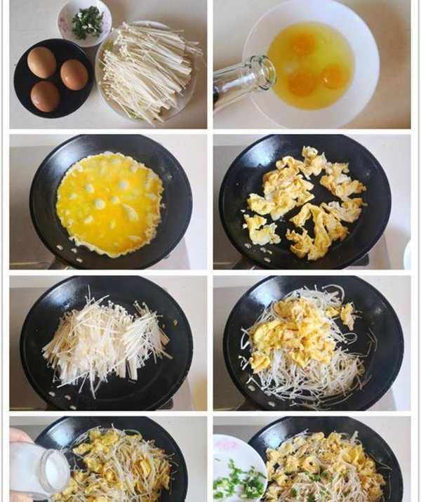 制作:1,準備原材料,2.在雞蛋裡加入適量的鹽和1勺甜料酒,撒上,3.往熱鍋裡倒入少許油,放入散亂的蛋液,4.煎雞蛋定型後,分成小塊裝盤準備,5.鍋裡稍微放點油,加入蘑菇翻炒,6.炒到香菇稍微變軟,加入炒過的雞蛋,7.2次炒後,加入鹽均勻翻炒,8.在上菜之前加入蔥翻炒。