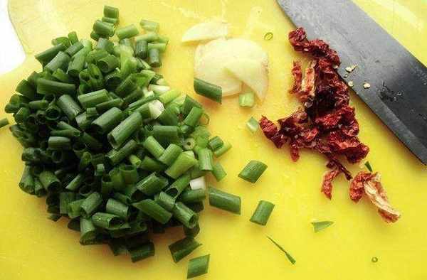 輔料:植物油、鹽、芽菜30克、薑、香蔥、辣皮子、老抽、雞精、料酒、白糖、香菜