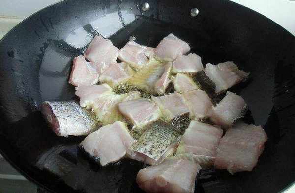 2、熱鍋涼油,油熱7成,下魚塊