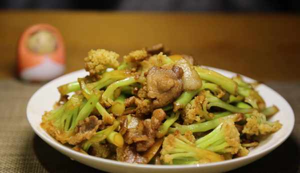 菜花是種比較喜油的蔬菜,用五花肉來烹制是最搭的瞭,今天用一種幹煸的方法,保留住瞭菜花脆脆的口感,搭配上五花肉的醇香,是相當下飯的一道菜。