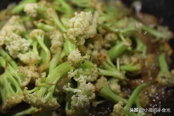 【我的小貼士】最好選用有機菜花,口感更爽脆。第一次在鍋裡幹煸不用放油,直接把菜花的水氣煸出去,菜花煸炒至邊緣焦黃色才能有焦香味,這種方法炒出來的菜花絕對比用水焯炒出來的菜花口感好太多瞭。如果願意吃肉,用五花肉炒,用豬油的香來成就幹煸菜花的美味。