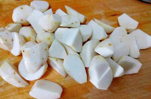 2、芋頭切的時候大小要均勻,這樣燒煮的時候基本上能一起軟爛;