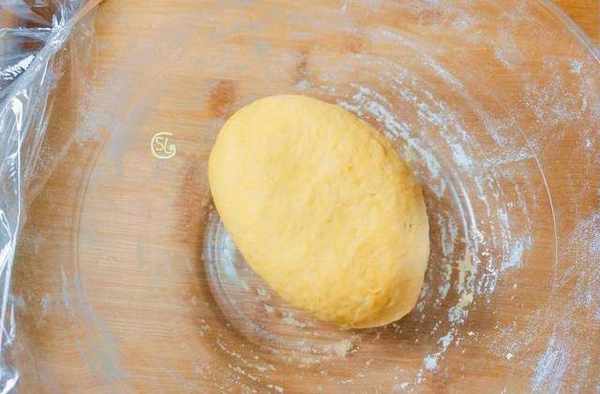 第2步,蒸熟後倒進大碗中,壓成南瓜泥,然後再加入適量的面粉攪拌成面絮狀,下手揉成比較光滑的面團,面團中等硬度。放在一旁松弛一會兒。