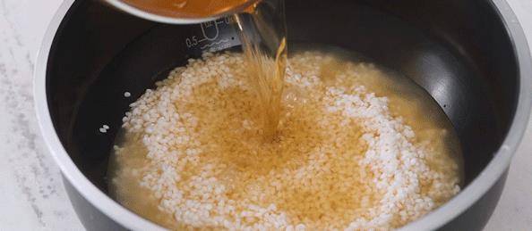 第三步:我們將圓糯米提前三個小時浸泡,然後再將泡好的糯米放到電飯煲中進行煮熟,煮熟之後糯米飯保溫待用。