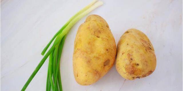 1、首先準備土豆和蔥,看傢庭人數,有多少人吃,根據人數決定做多少,我傢一共三個人,所以分三個,準備2個同樣大小的土豆,去除小蔥的根部,用水清洗幹凈。