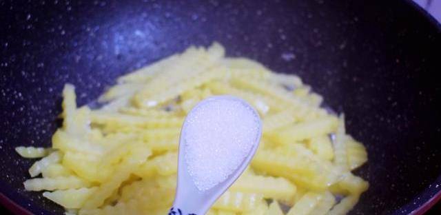 【所需食材】:土豆2個、砂糖1大勺、小茴香1大勺、鮮榨1大勺、辣椒粉適量、食用油適量、蔥適量。