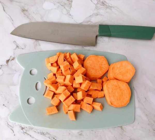 第3步、切厚片再切丁,盡量一致,不要太大或者太小。