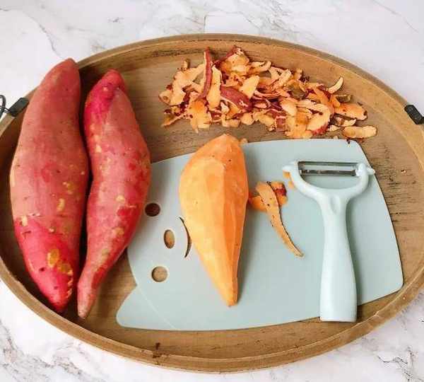 第2步、紅薯用削皮刀去皮。