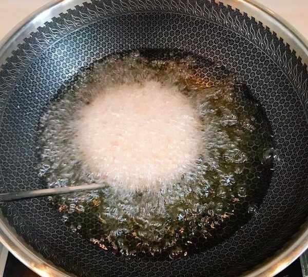 第9步、油溫6成熱放鍋中炸。