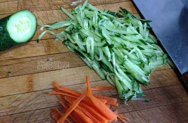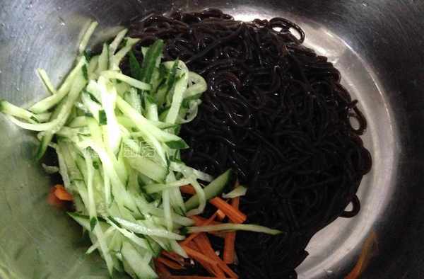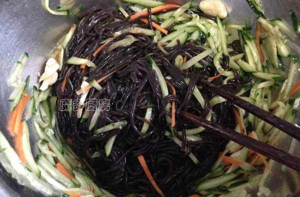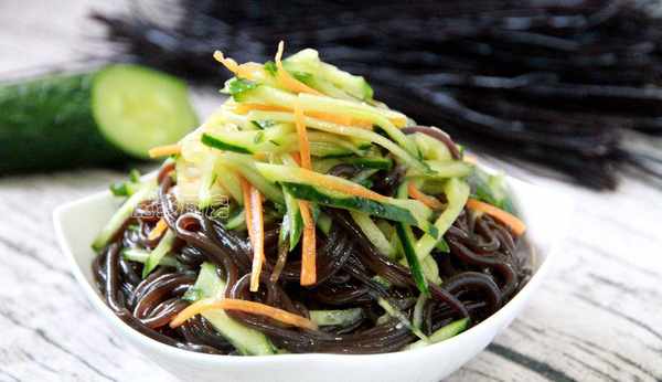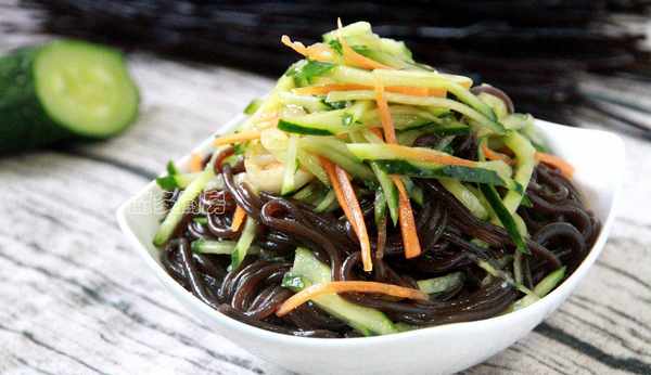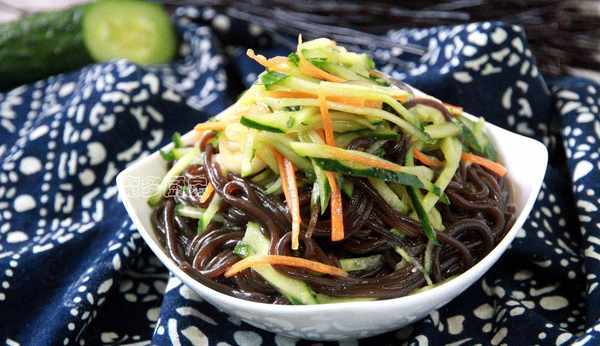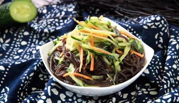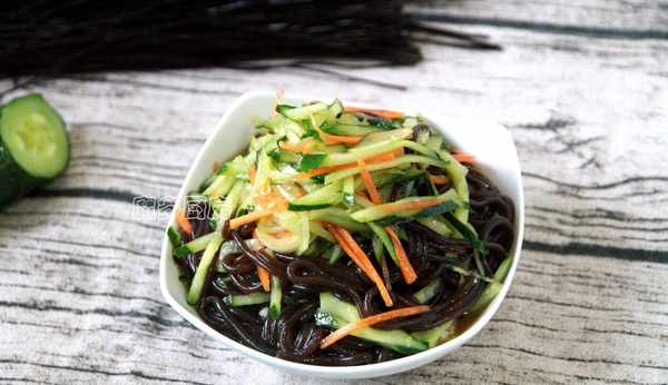 原料:蕨根粉、胡蘿卜、黃瓜、鹽、食用油、香醋,大蒜、白糖;