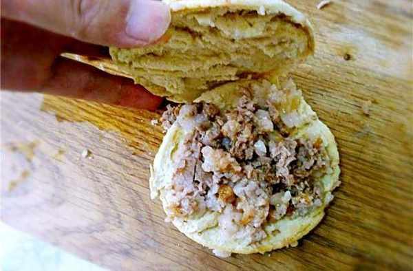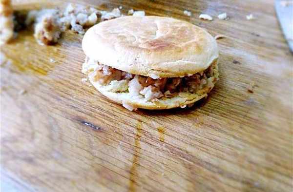 將餅切開,加入肉末,香氣噴噴的臘汁肉夾饃就做好瞭,快點來吃吧。有時間瞭,您也在傢做著吃,自己做的即幹凈,美味,又放心安全。