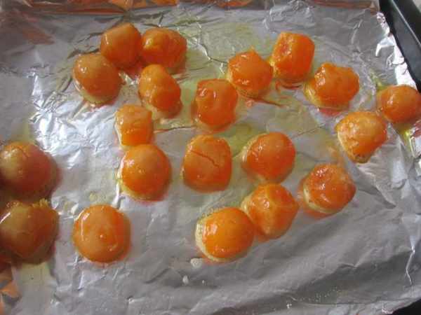 第三步:在醒面的時候,我們來做餡,鹹蛋黃放到烤盤上,噴上白酒去腥,烤箱200度烤2分鐘拿出。