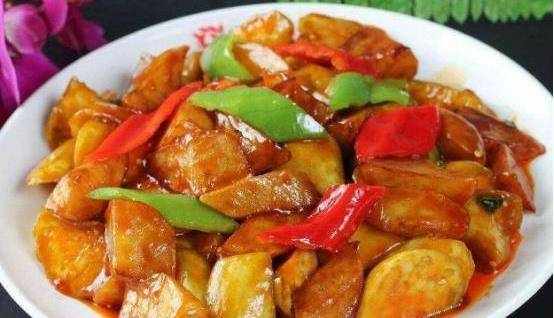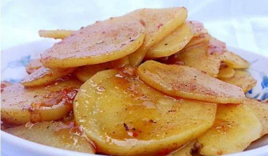 甘肅人民在做土豆的時候,也有自己的心得,最常吃的就是土豆片,把土豆洗凈削皮,然後切成厚厚的一片,放入油鍋當中炸到熟透,隨後把土豆轉移到另一個油鍋當中,繼續加入一些青紅辣椒翻炒,最後倒上特制的醬汁,一份甘肅人民都愛吃的土豆片就做好瞭。