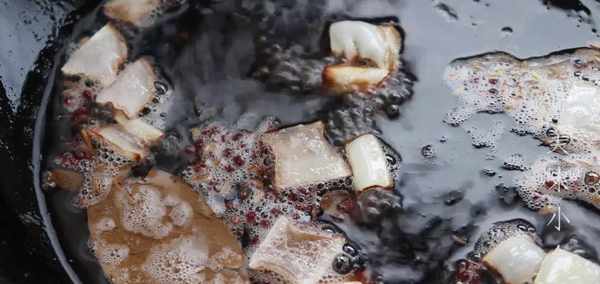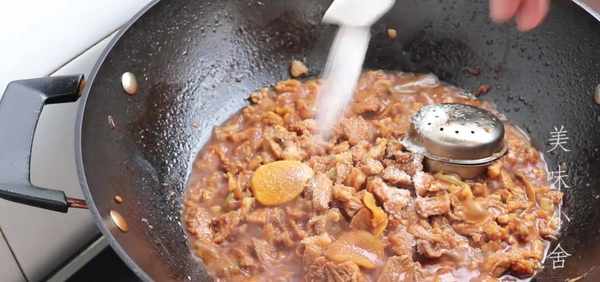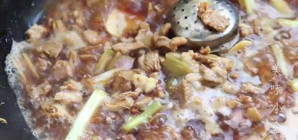 鍋裡加入適量的鹽和十三香,然後轉大火收汁,這個時候就可以關火出鍋瞭