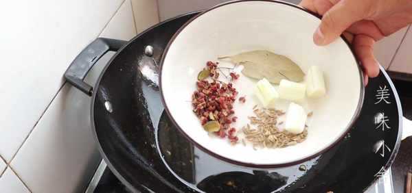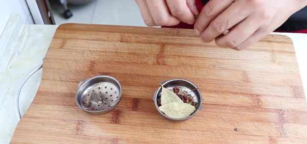 4、這個調料盒裡放入小茴香、花椒、香葉,還有桂皮。